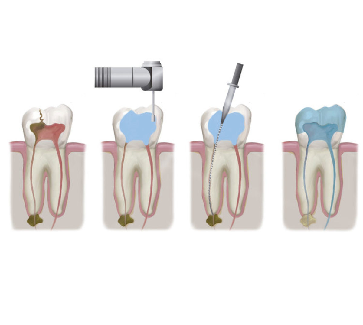 A root canal treatment involves drilling a hole into the infected tooth to remove the infected pulp and nerves from the tooth. Once the root canal is cleared from bacteria, it is then sealed to prevent further damage. Over 90% of root canal treatments are successful and save the tooth for years or even a lifetime after the treatment.